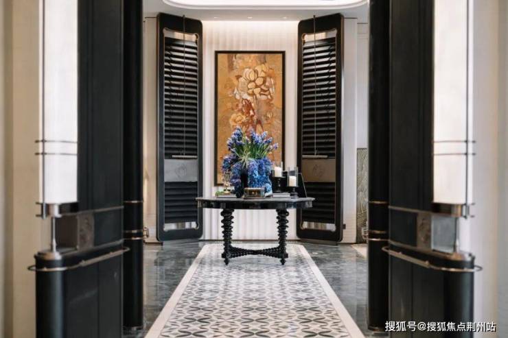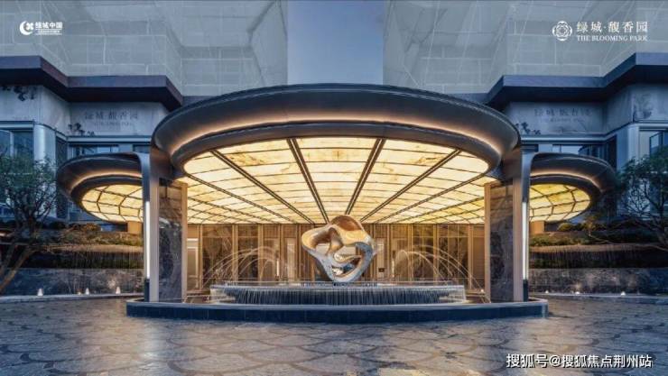 社区大门就让人眼前一亮,以山茶花瓣为造型打造了一条约150米长的超级门街,门廊的两侧是三叠绿植流水瀑布,再点缀两株丛生金桂,形成优雅的酒店式洄游落客区,低调奢华的老钱风扑面而来。