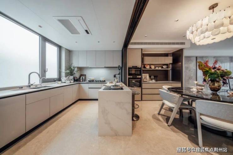 厨房、餐厅、客厅、阳台连为一体,把世家大宅的排面直接拉满。