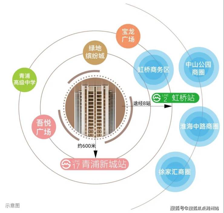 交通方面:(地铁17号线(无缝连接2号线、10号线)、高速路网(G1503、G50、S26)、崧泽高架(在建中)公共交通(公交19路、17路、11路、5路))周边交通路网十分发达,四横三纵通达全市及长三角主要城市。