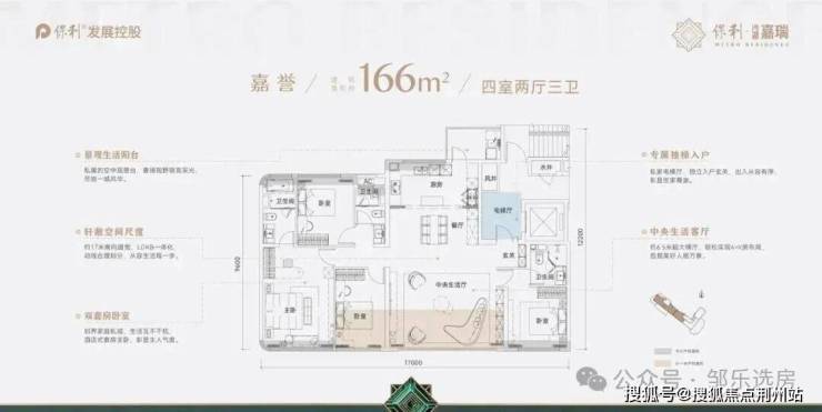 保利·沙湖嘉瑞项目共包含3个户型,分别是166、175、139平,具体分布如下: