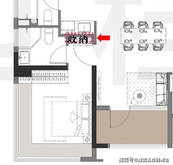 类似户型一般做到主卧套房问题不大,但在衣柜、卫生间之外,再多出一个 收纳空间 ,则十分难得。