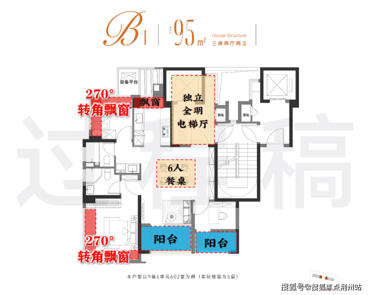 值得一提,当很多豪宅还在用转角飘窗打动客户,项目却在这个 500w级新盘上拿出南北 双 270度「全景舱户型」。