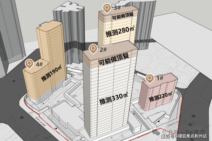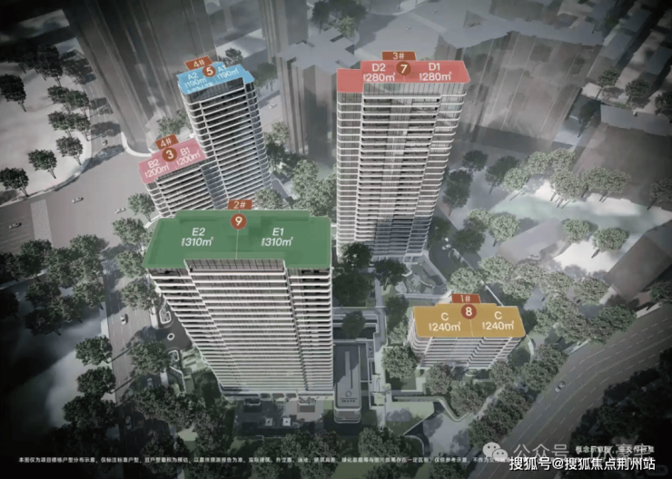 其中,2号楼和3号楼应该为双楼王,均为正南朝向百米高层,两梯两户配置。