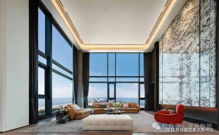 约260㎡的户型只有2栋楼,上个月首开1栋基本售罄,本月最后1栋也将推出。约260㎡的户型是海信对4.5代宅的尝试,客餐厅采用了挑空的立体设计,6.8米的层高,270°L型约24米的无柱全景舱设计,让视野更开阔,且坐落于最前排,海景一览无余。