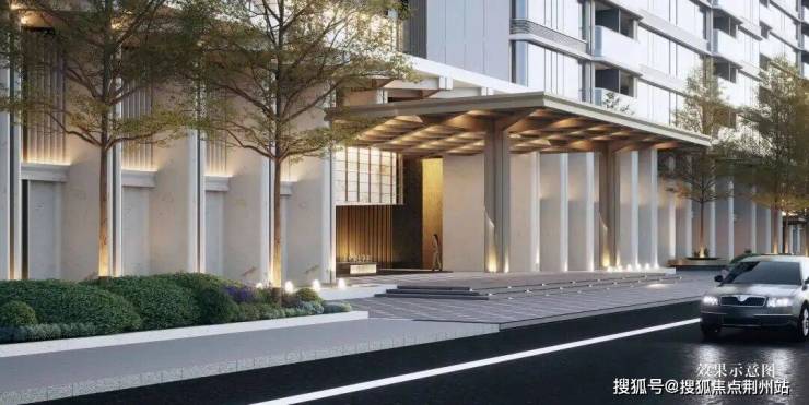 社区主入口以伦敦梅费尔瑰丽酒店为设计原型,打造了气势恢宏的酒店式门仪,200米宽的酒店式门仪,近7米高檐口,16根柱廊排成序列;点睛之笔「明瓦灯笼」,近10米宽、6米高的巨型光影装置,金色雨棚与玉石纹理透光材质巧妙衔接,下方是粼粼水景,光影流转间,直接点亮归家的仪式感。