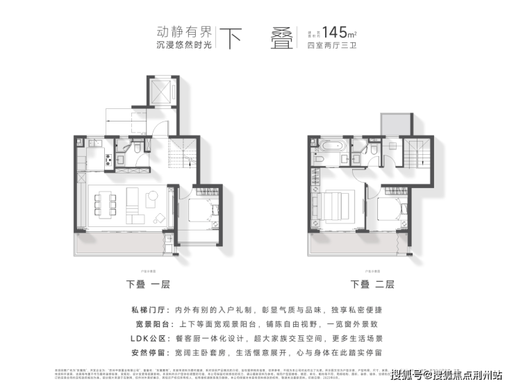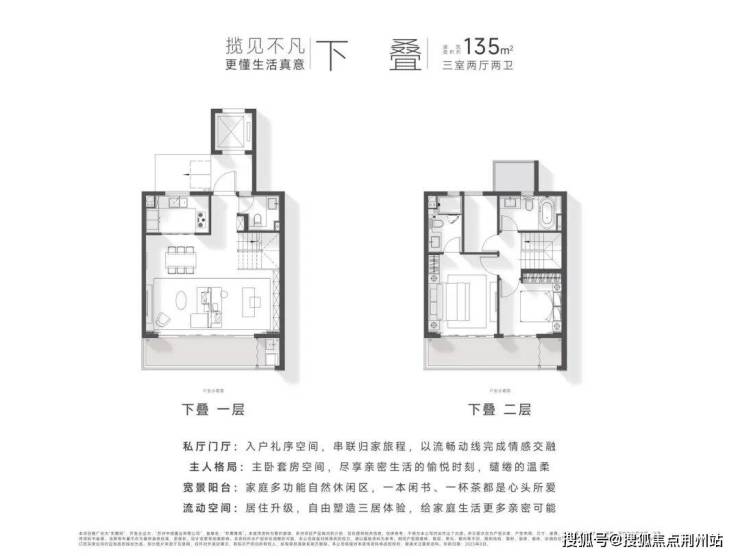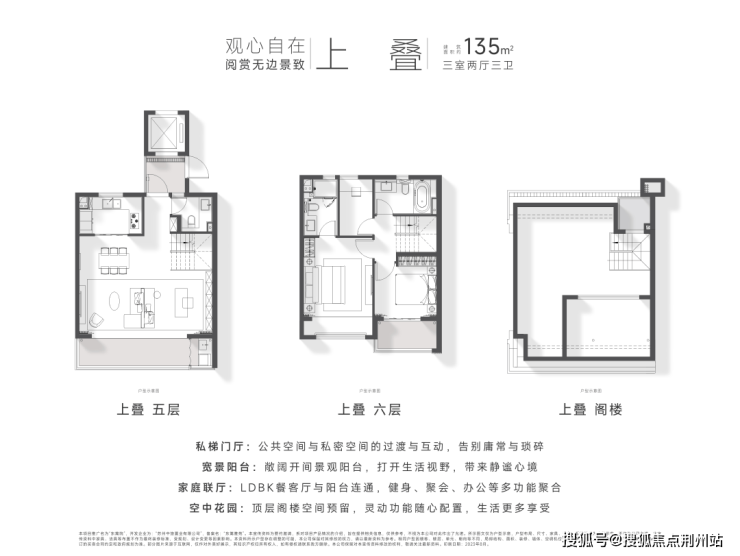 定制空间:全横厅设计、LDK多功能家庭区;功能间配置+灵动空间设置;建面约135㎡以上户型,全3卫配置,居住品质更高。