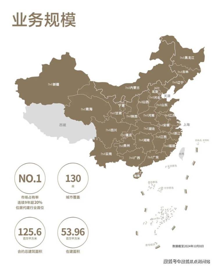 截至 2024年12月,绿城管理足迹覆盖中国130座城市,商业代建总建筑面积达 95.7百万平方米、政府代建总建筑面积达 29.9百万平方米。2020-2024年度荣获 90余项行业 TOP1荣誉,包括中国房地产代建运营引领企业 TOP1、中国房地产代建领先品牌TOP1等。
