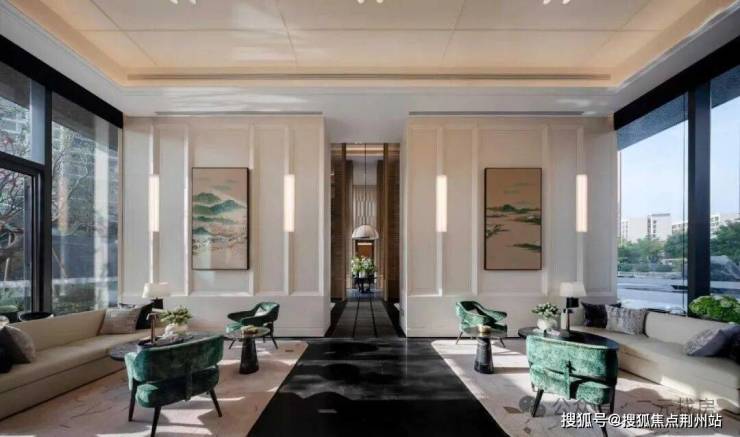 项目公区的规格挺高的:冰蓝玉石打造的归家入口,9米挑空归心大堂,高端石材打造的首层入户大堂。