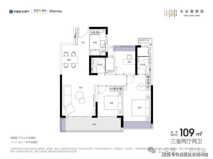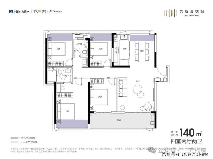 项目首开7号楼,建面约109㎡和140㎡房源,得房率约90%。