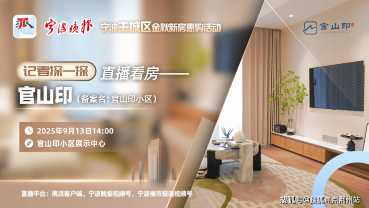 从本周起,“宁波晚报”视频号、“宁波楼市报道”视频号、甬派客户端3大平台,将陆续对参与本次“宁波主城区2025金秋新房惠购活动”的楼盘进行探盘直播,满足大家“云”看房需求。