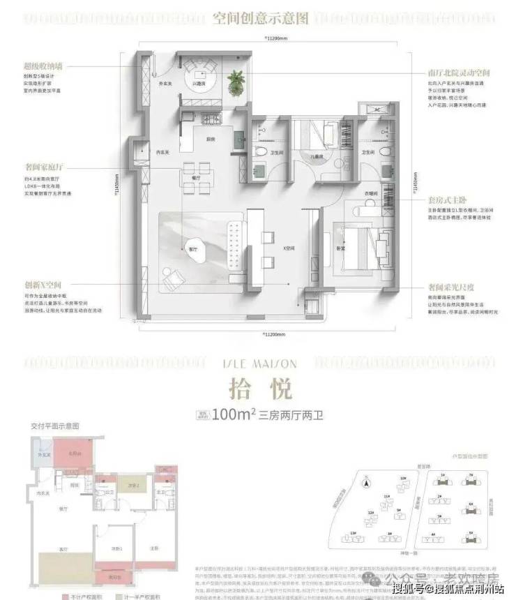• 建面约100㎡三房两厅两卫,定位刚需改善,户型布局紧凑实用。依托四代住宅的赠送优势,在经典三房格局基础上,额外打造一间功能可变的“+1房”,实现百平空间做4房,实际使用空间十分充裕。