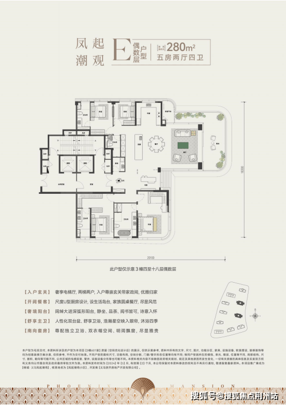 现代东方合院建筑面积约266-430㎡,以层层私家观景台、木纹铝板镶嵌高奢石材、首层环游回廊空间设计,实现东方屋檐下的建筑聚落群,印刻身份的象征;环幕空中云邸建筑面积约120-420㎡,大面积玻璃幕墙,鎏金线条、全面屏约270°曲线建筑,让阳台成为归家的空中花园,让客厅成为聚会的舞台,让厨房和餐厅成为家庭交流的中心。