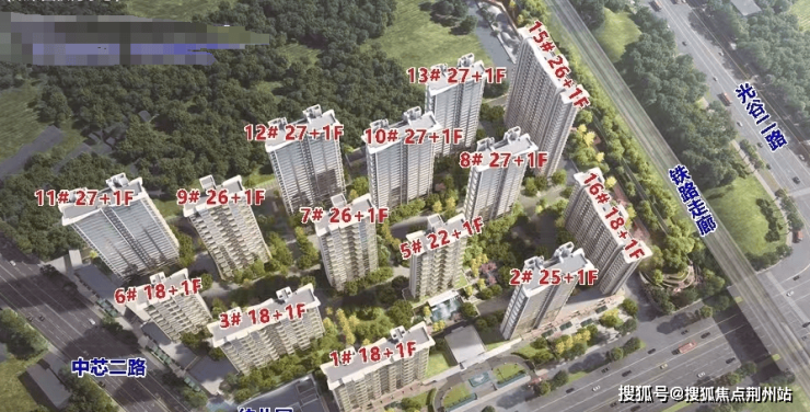 整个项目包有二期,首先是一期跟二期的区别。项目临铁路线,最靠近铁路的两栋楼,也就是15、16号楼被规划为二期,楼栋朝向也与一期区别开来,基本为偏东西朝向。