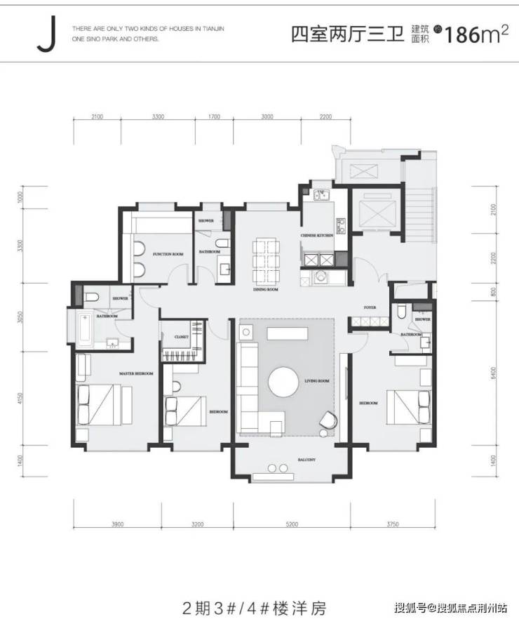 刚刚展出的样板间,为建筑面积约186㎡四室两厅三卫的洋房户型。