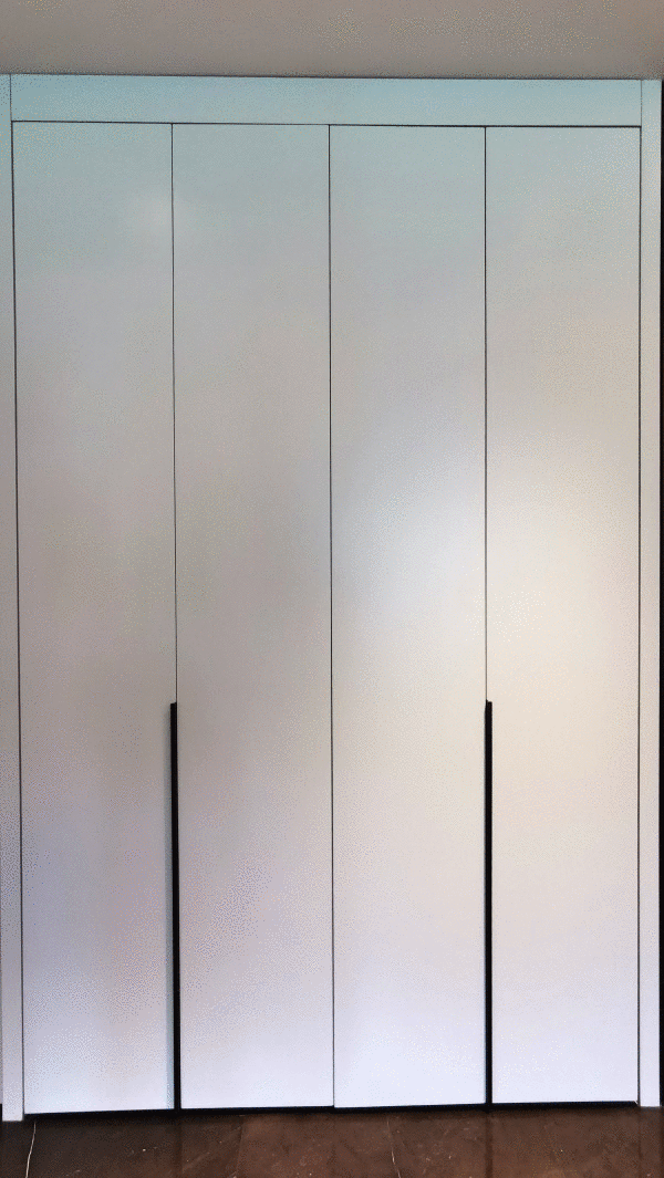 二是充分利用玄关走道的空间,规划了一处独立家政间。外部安装两扇吊轨推拉折叠门,打开时也不会占用太多走廊空间,优质五金保证折叠门的延年性与顺滑感。