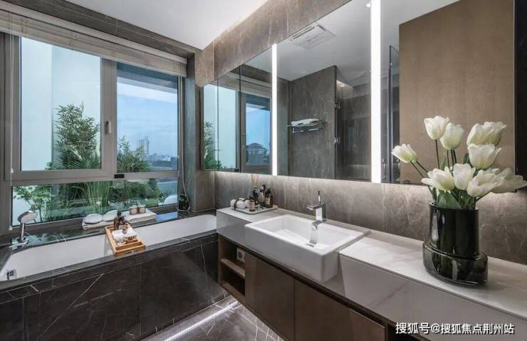 主卫浴缸旁的超大玻璃窗,已经有了度假酒店的感觉。