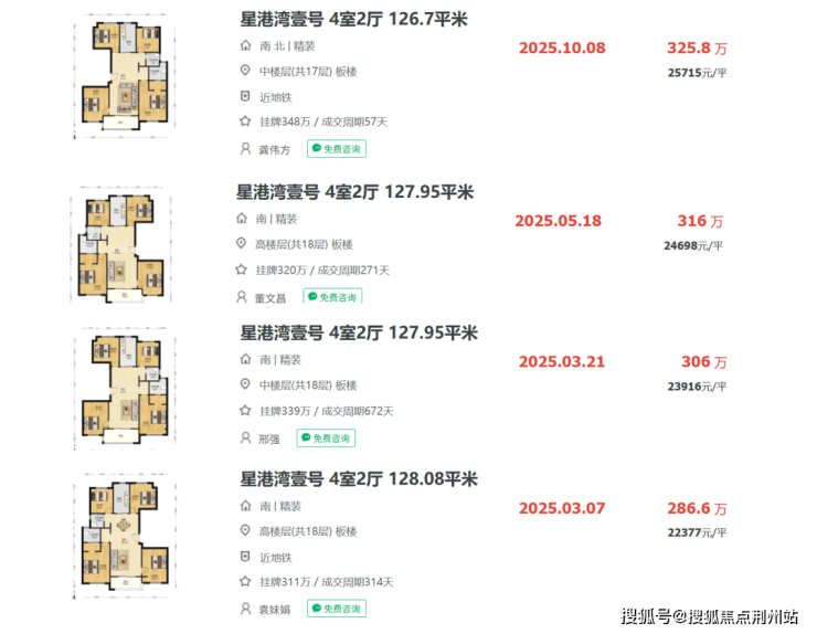 以星港湾壹号的建面约126-128㎡户型为例,今年初的成交单价尚徘徊在2.2万/㎡左右;随着看房量的回升和诚心客户的出现,年中时已有优质房源能够以2.4万/㎡的价格成交;而到了近期,其成交价已逐步站稳在2.5万/㎡的区间。