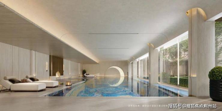 空间做精,室内恒温泳池以约25*8米专业泳道,配置采购成本高达约200万的恒温循环设备。泳池底部以马赛克拼花致敬梵高名画《星空》,颜值好看,档次更高。
