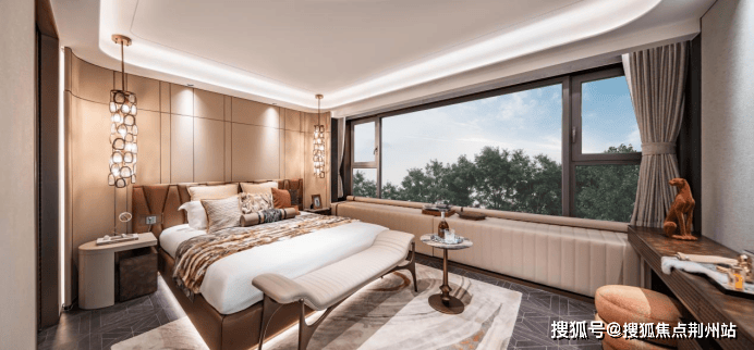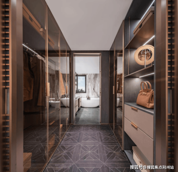 宾利主题下叠:深度汲取豪车设计精髓,主卧套房采用宾利双色内饰理念,独立衣帽间和卫浴空间的设计彰显出对生活细节的极致追求。