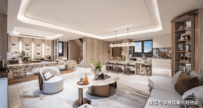 BV主题上叠:将意式美学精髓巧妙融入日常生活的每一个细节。约51㎡的餐厨客一体空间,以BV标志性设计语汇打造出流动的奢雅氛围。
