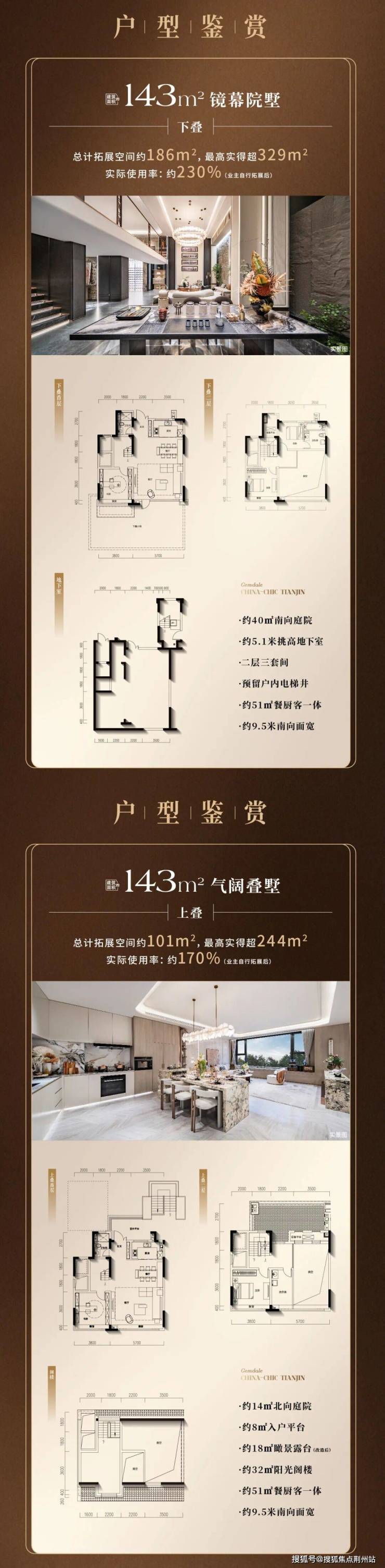上叠空中墅境:同样的建筑面积,通过阳光阁楼和瞰景露台的巧妙设计,拓展后实际使用空间达约244㎡。