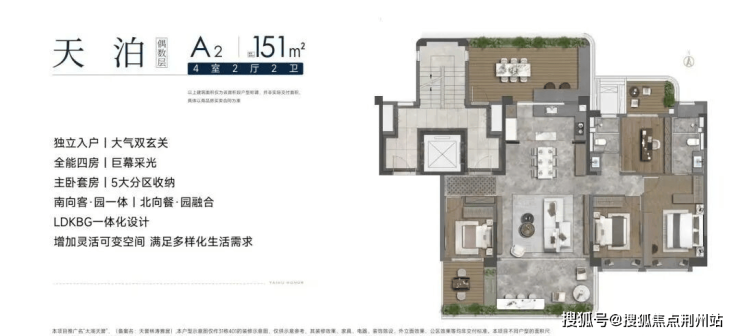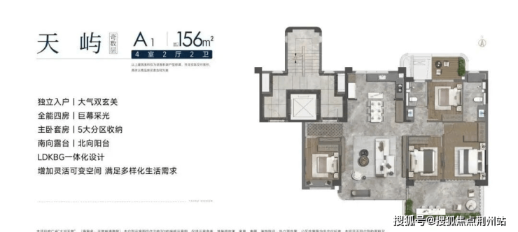 产品方面,四代洋房A1户型建面约156㎡,4房2厅2卫,四开间朝南,LDKB一体化设计,全能四房拥有通透采光,南露台+北阳台可打造多元化活动空间。
