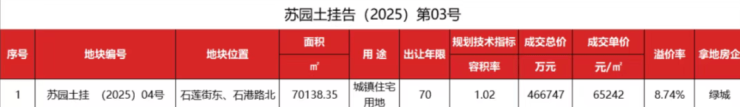 2025年7月,绿城以前瞻战略眼光,6家房企,激战49轮,溢价率8.74%,竞得玫瑰园南优质地块,地块容积率仅1.02,近年来,苏州出让容积率≤1.05的宅地屈指可数,金鸡湖湖岸线低密宅地更珍稀,地块成交楼面价65241.78元/m2,刷新了江苏省楼面地价纪录。天赋稀贵的资源密度,与玫瑰园一期形成“玫瑰园湖区”,在苏州独树一帜。