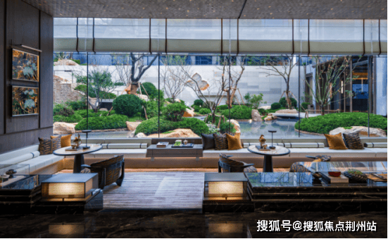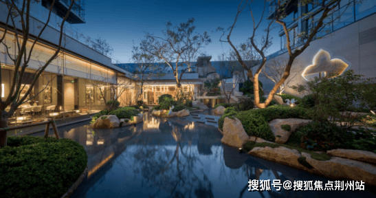 驻足门庭,约45米无雨落客门庭,与百年老桩八棱海棠遥相呼应,以岁月风骨叙写首重礼序;步入庭院,高达约8米的五重玉石叠瀑,潺潺水声入耳,如幽谷清音沁心。