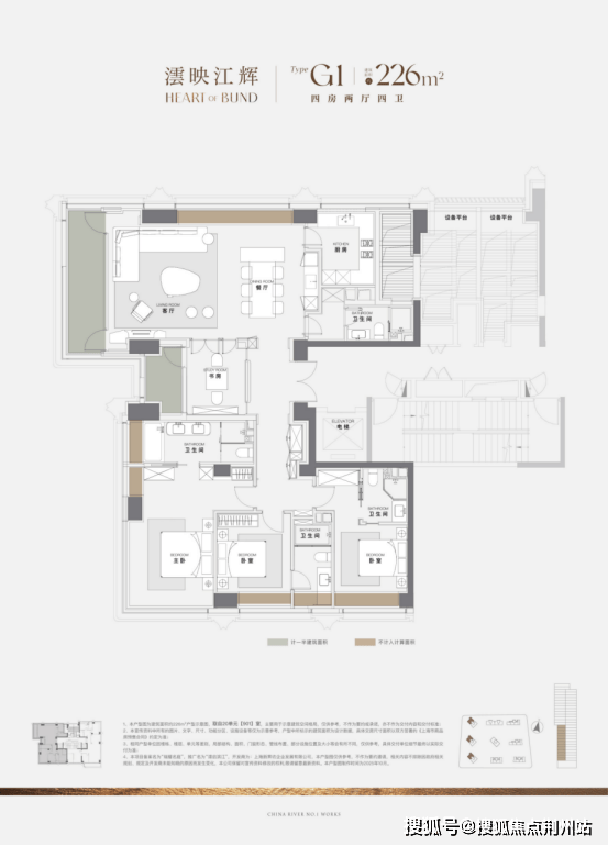 226㎡四房两厅四卫全明格局,以「南向三卧+蝴蝶灵动线」重构空间美学——三间卧室皆朝南纳光,主卧更以270°无柱转角巨幕,将江景化作流动的油画;楼下园区园林移步换景,俯瞰即可畅享超1600㎡自然园林,推窗即是一幅会呼吸的自然画卷,每一眼都让人沉醉。