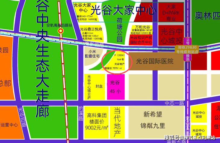 早在2024年12月20日,武汉光谷地产有限公司以25530万元总价竞得“164地块”,成交楼面价7579元/平。项目位于东湖高新区高新四路以南,流苏街以北、月荷路以西,土地面积约为21051.79㎡。