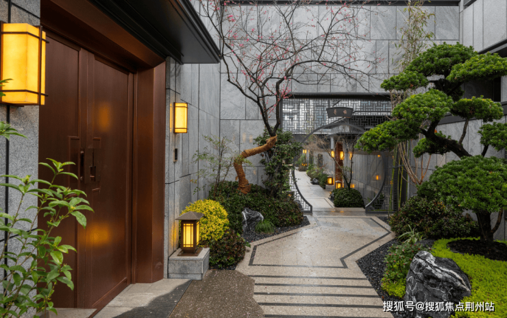 天朗气清时,水墨色与美国白金石的金绿辉映,交织出一种奢华但又深邃的沉静感。保证绝对的隐私性和生活品味。台阶、格栏、水系、亭台、树柏,层层递进,涵雲軒在追求美学的同时,做出了真正意义上的“隐奢”入口。外界无法一眼窥尽全貌,更添高门大户之神秘感。
