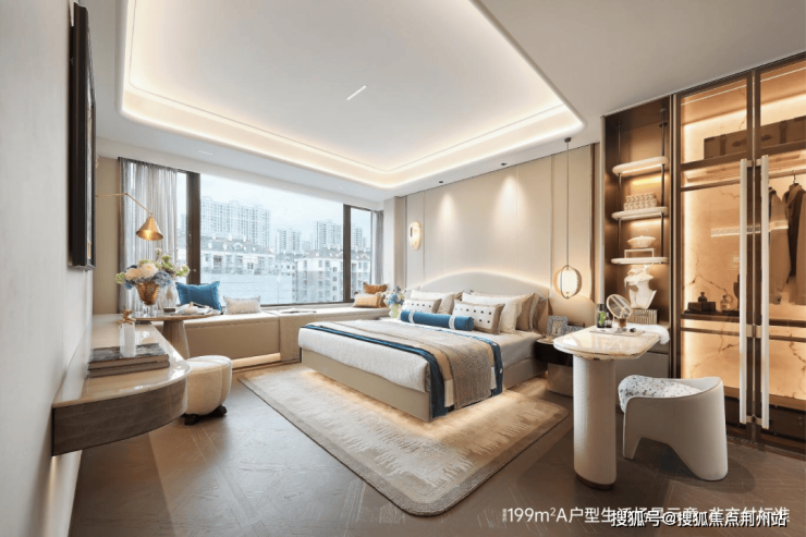 项目涵盖建面约199㎡观云奢宅&建面约371-452㎡中式排屋。高层类一梯一户,专属电梯前厅;采用洄游式通厅设计,LDKB一体化连通,跑道式双联阳台,主次卧均设计为套房。