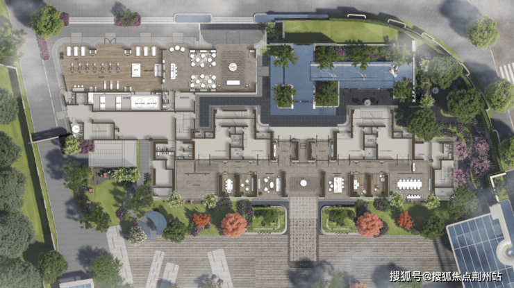 你能看到尤安团队笔下的海派现代风外立面,汲取了武康大楼经典的弧线灵感,用蓝灰色玻璃、仿铜色铝板、深色石材搭配圆弧倒角收边,将经典三段式演绎出超高辨识度。