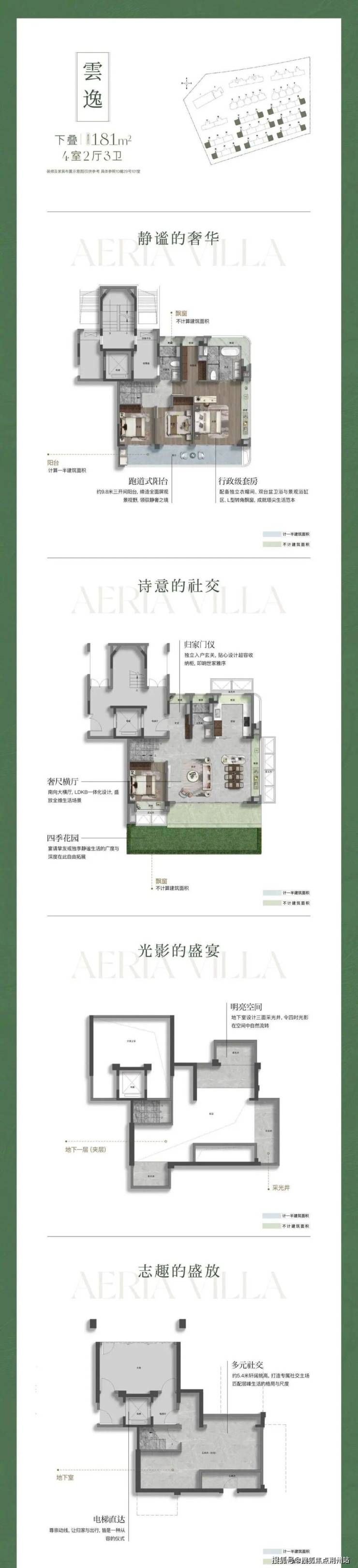 整个项目容积率仅约 1.5 ,远低于常规住宅项目,规划了 叠墅和小高层 两类产品,建筑布局充分考量视野与私密性,确保每家每户都能享受充足的采光与景观资源。