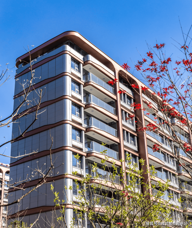 项目采用LOW-E中空玻璃与一体板的组合,并在银灰色一体板的基础上,巧妙融入了创新型深玫瑰金色铝板线条,呈现出国际化品质立面感。