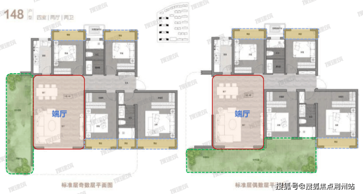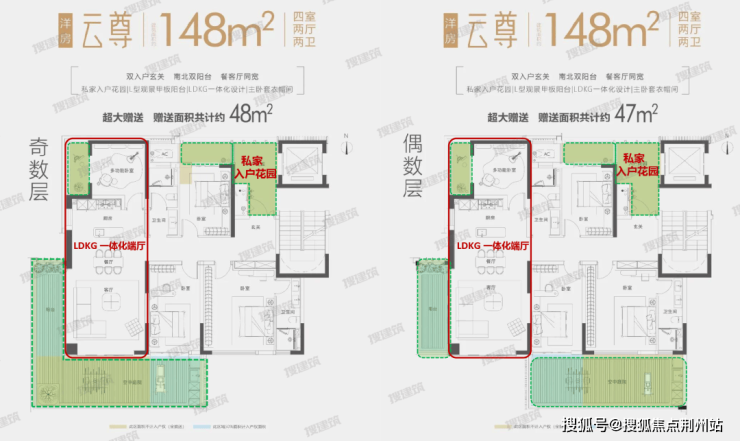 福州建发缦云项目容积率1.82,产品定位148-168平米纯商盘。在户型设计上,奇偶错层设计,每个户型都搭配了独立的庭院,约6.2米挑高,而且这部分面积是完全赠送。建面约148㎡配置双阳台、建面约168㎡则配置了三阳台。