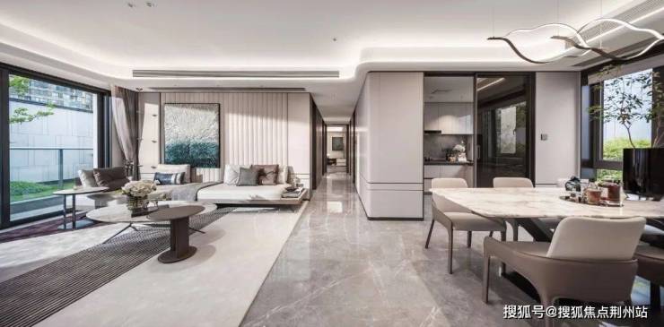 建面约148平的户型,在南面所有面宽均设置了空中花园,形成约21米长的空中连廊,可尽享270°环绕视野;屋内采用南北通透的LDK客餐厨一体化设计,和独立的衣帽间主卫体系,让生活起居张弛有度 。U型中厨之外,岛台式西厨空间,连接餐厅,双面采光,双面赏景。