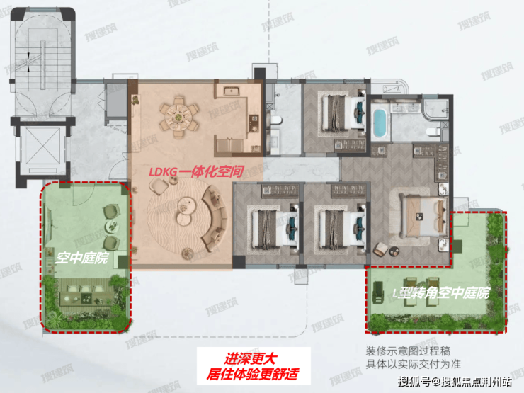 空中花园作为全赠送区域,每户赠送面积35~50㎡,赠送率高达23%~30%。超高赠送让居住空间尺度得到较大延展,提高居住实用性。让居者既可享受高层住宅的开阔视野,又拥有低密社区的庭院生活。