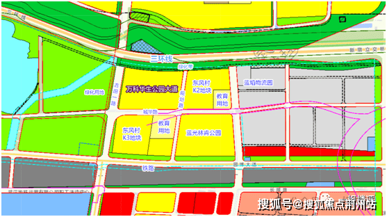 周边多以住宅、教育用地、公园为主,但现阶东侧还有大量工业园,且北边紧挨三环线,西侧有古田一路高架,噪音不可忽视。