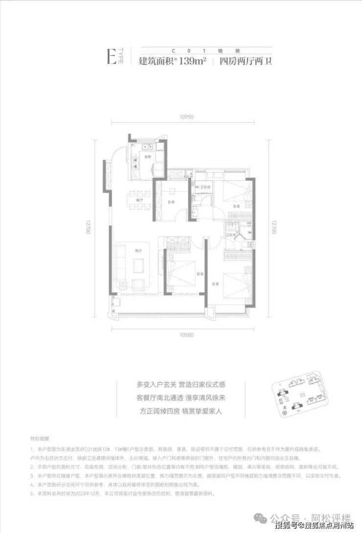 项目13号楼共46层,1个单元,3梯4户,边户有独立电梯前室,主推建面约113-139平毛坯房源。