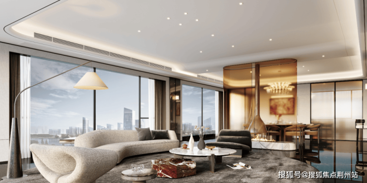 相较于传统别墅,大平层在视野开阔度上优势显著,真正实现了“居于云端,俯瞰一城风华”的巅峰体验。项目通过超大窗墙比勾勒震撼天幕立面,引无限风光入室,使居住者能够以独一无二的视角欣赏永康城市美景。