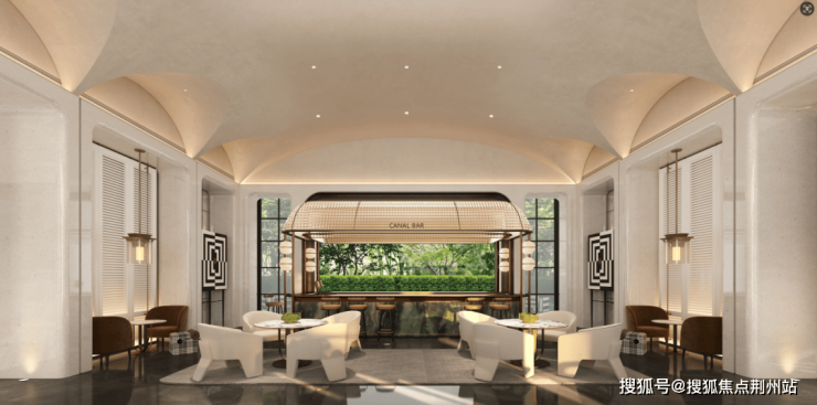 这两条轴,串联起不同的主题景观和功能空间,最终目的是把社区变成一个巨大的、沉浸式的“生活剧场”。对称的轴线、精致的拱券细节,再配上流动的迎宾水景,被有序地编织在日常的归家动线上。