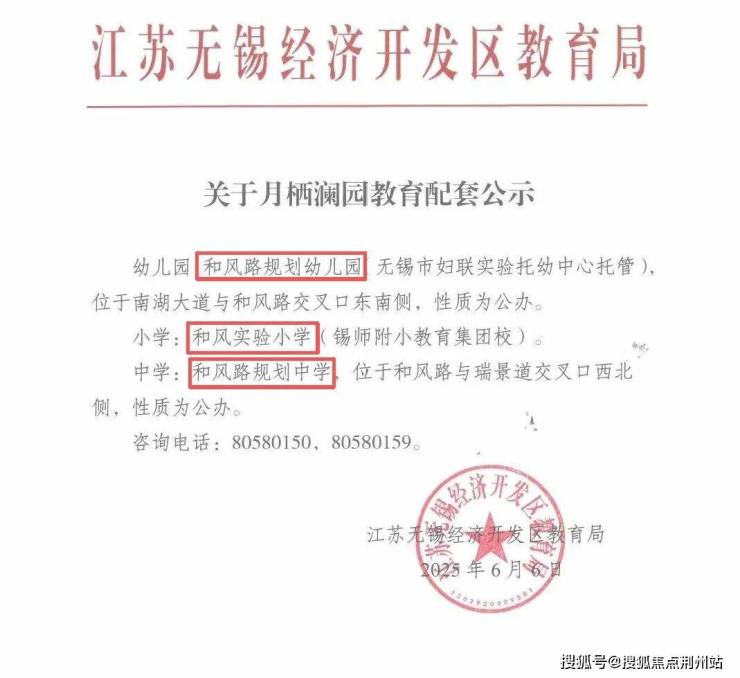 另外,项目教育配套已经公示,分别为:和风路规划幼儿园(无锡市妇联实验托幼中心托管)、和风路小学(锡师附小教育集团)、和风路规划中学,周边还有像狄邦文理学校,全龄段优质名校资源环绕;