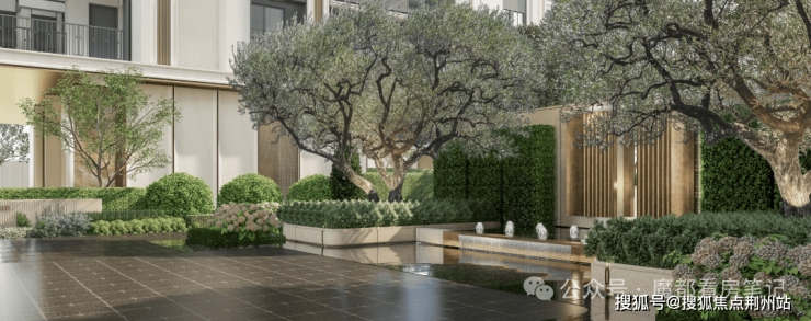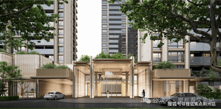 项目打造现代海派风格的外立面,线条简洁大气; 社区规划六重生活体验空间,从酒店式落客入口、镜面水庭到美学花园,旨在将高端酒店的奢享基因融入日常生活。