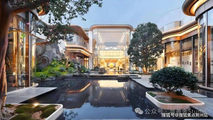园林景观依托场地高差,项目打造沉浸式下沉庭院,与会所、景观连廊无缝衔接,构建“地上园林+下沉庭院+地下空间”的立体景观体系,以“一轴八园六巷”为布局,将东方草木哲学与现代度假感完美融合,成为墅区里的“私享秘境”。