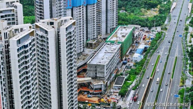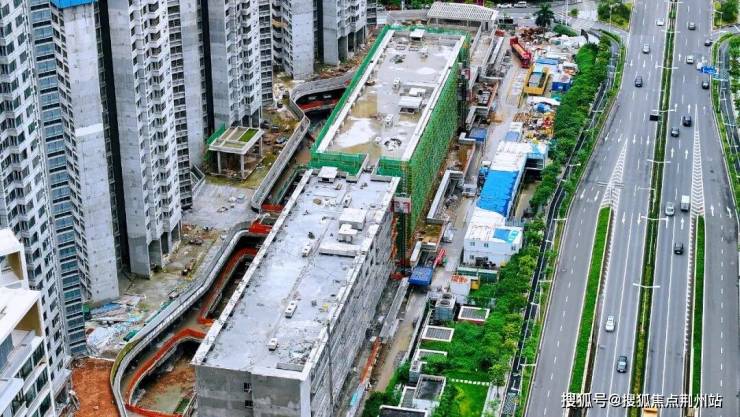 通过航拍来看,现场正如火如荼的施工中,项目已经全面封顶,建筑主体轮廓清晰可见,部分区域的绿网已经撤掉。
