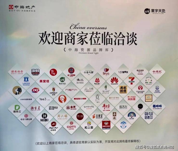 罗森便利店、周六福、怂火锅、华为、椰子鸡火锅、蛙来哒、KING运动空间、米咔库、茉莉奶白、有米师傅、太二、九毛九、周大福、茶理宜世、全希鲜蚝自助等。