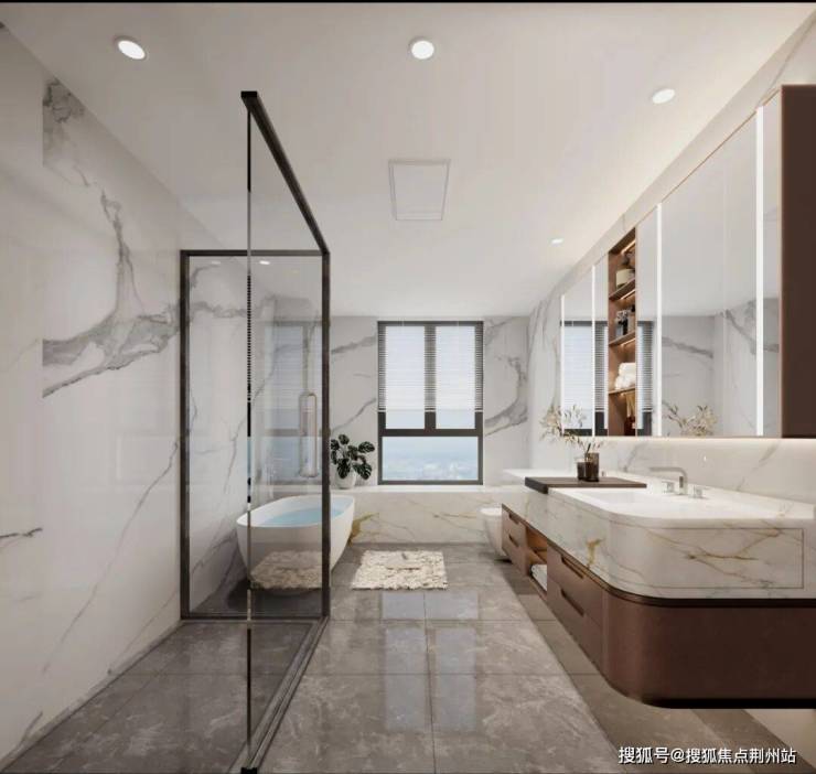 主卧奢华套房,步入式衣帽间设计,私享卫浴配置双台盆,为浴缸留下充裕空间,给足奢宅生活的舒适度和松弛感。