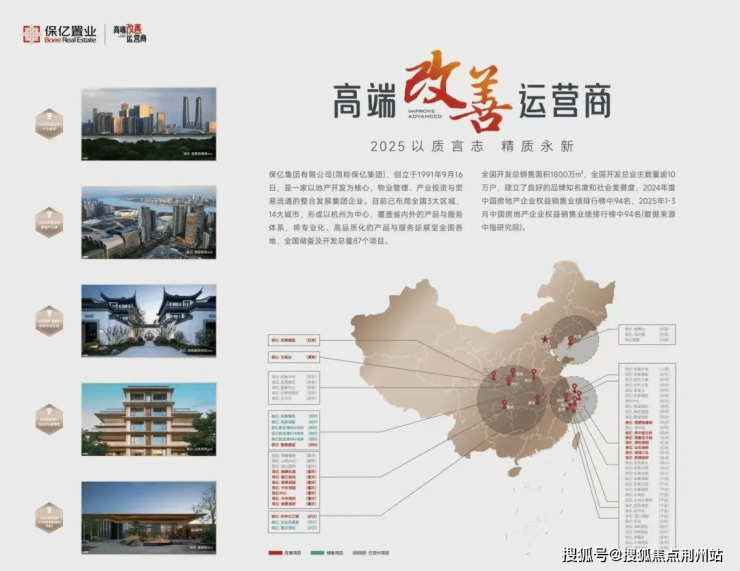 保亿集团作为浙江品牌房企20强,2025年应势发布“高端改善运营商”全新定位,坚持精耕深拓,专注产品,稳健前行。已布局全国三大区域、14大重点城市。先后打造杭州奥体核心住宅地标—奥邸国际;亚洲十大豪宅—观雲钱塘城;千万级湘湖中式合院—湖风雅园︱和院;类独栋式叠墅—湖珀润园、沁东润府叠墅等标杆之作。