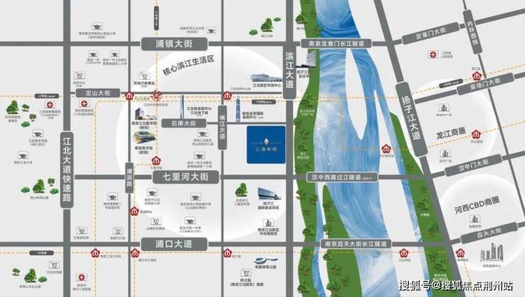交通方面紧邻在建的地铁11号线与4号线二期;自驾通过扬子江隧道,15分钟就能抵达河西。约2公里内,南京万汇城、山姆会员店、华润万象汇(在建)等,给日常购物、休闲娱乐需求提供保障。